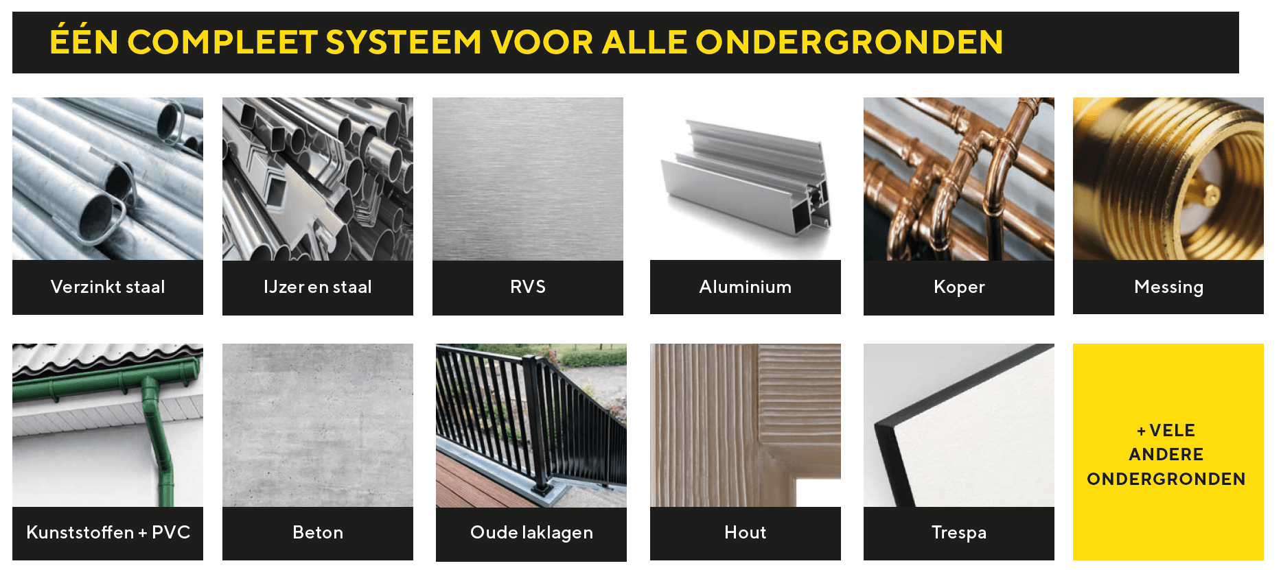 In onderhouds- en industrieel schilderwerk wisselen ondergronden elkaar continu af. Staal, aluminium, kunststof of plaatmateriaal vragen vaak om verschillende systemen. Dat kost tijd en maakt het werk onnodig complex.