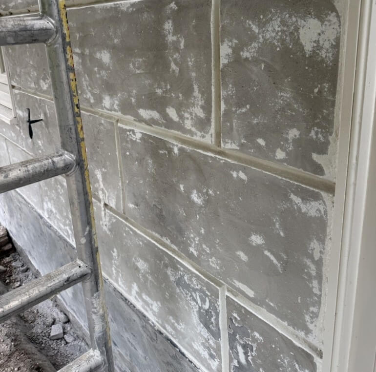 Elke duurzame gevelrenovatie begint met het volledig vrijmaken van de ondergrond. Oude ornamenten, sierstrippen, verflagen en met name loszittende stuclagen moeten consequent worden verwijderd. Het doel is helder: een stabiele, draagkrachtige ondergrond zonder zwakke plekken. Alles wat niet vastzit, vormt immers een risico voor de nieuwe opbouw. Wanneer losse delen blijven zitten, is de kans groot dat het nieuwe stucwerk zich daar niet goed aan hecht, met als gevolg onthechting op korte termijn.